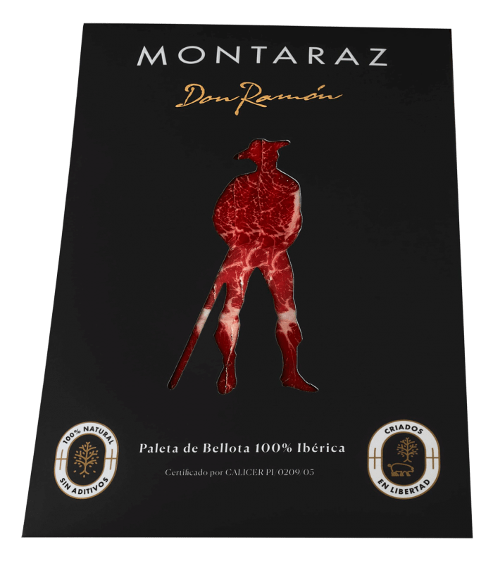 Paleta de Bellota 100% Ibérico Don Ramón cortado a mano 100 grs. Envasado en atmósfera protectora.
