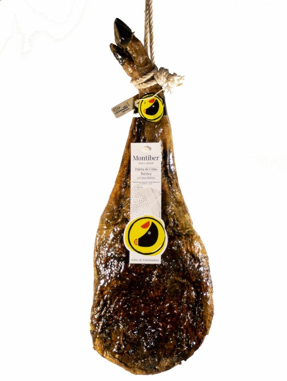 Curado en secaderos naturales durante más de 20 meses en contacto directo con el aire de las sierras del sur de Extremadura.